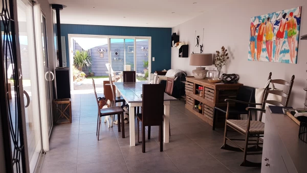 Cette maison de 2005 située à Aytré, proche des commerces et de La Rochelle, vous propose un espace de vie lumineux, fonctionnel, avec des espaces extérieurs sans visà vis et la posibilité de stationner votre véhicule sur la parcelle de la maison. L'ensemble de l'habitat est de plain-pied, à l'étage, un studio peut être loué de manière indépendante sans nuisance pour la maison principale; Le bien se compose d'une entrée, d'une cuisine ouverte sur un salon/salle à manger de plus de 34 m2, de deux chambres, d'un local technique, d'un couloir équipé de rangements, d'un WC, d'une salle de bains, de deux patios (de 37 et 14 m2) dont un avec rangements et d'une cour devant la maison de 41m2. Le studio est libre et se compose d'une kitchenette, d'une pièce principale avec lit et bureau, d'une salle d'eau et d'un WC État impeccable, peut être vendu avec certains meubles - Annonce rédigée et publiée par un Agent Mandataire -