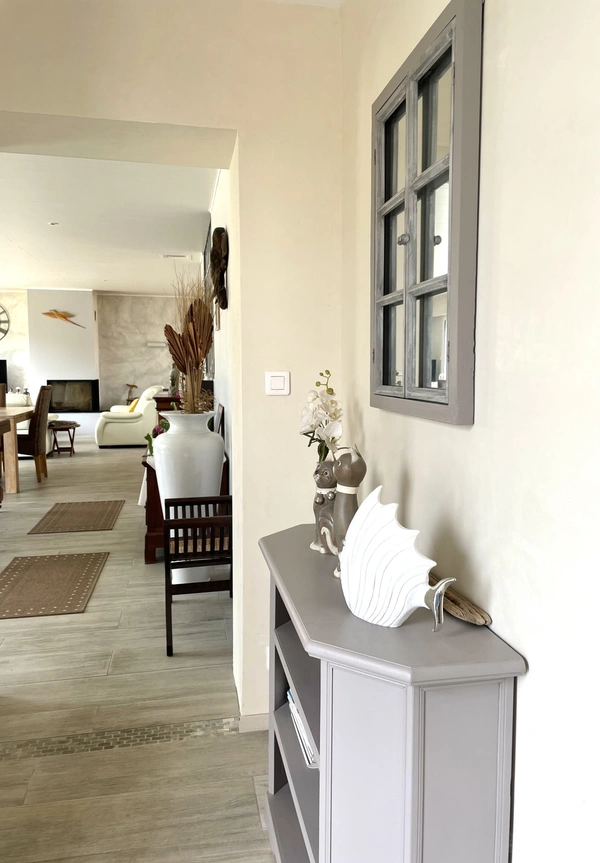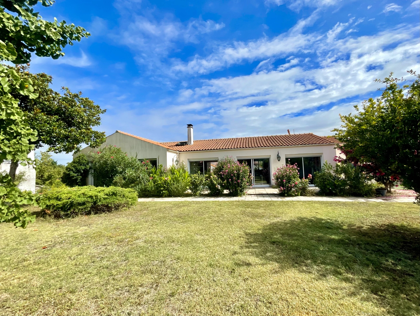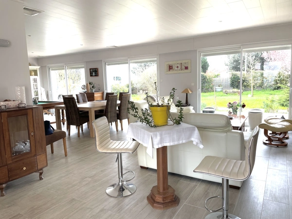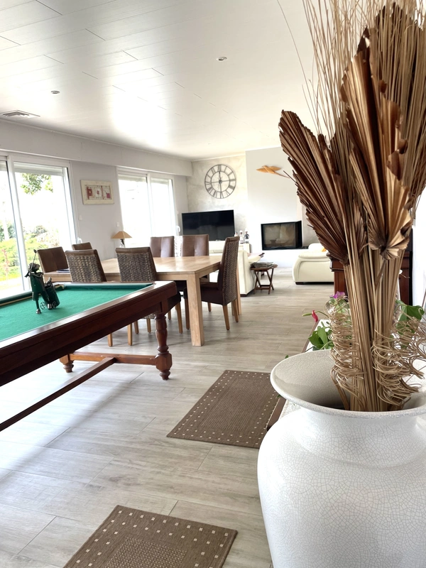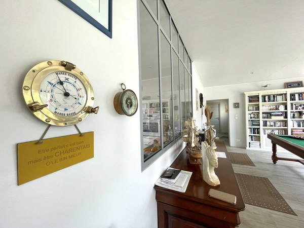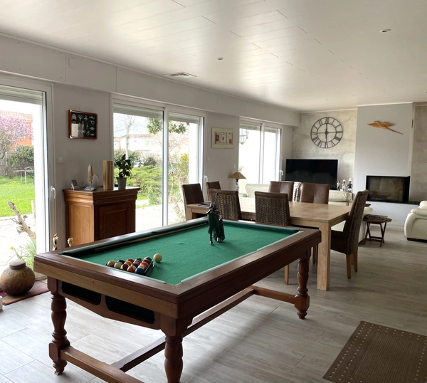 J'ai le plaisir de vous proposer, en exclusivité Noovimo, un bien unique de 212 m2, de plain-pied, sans mitoyenneté, baigné de lumière, proche du collège, à 9 minutes à pied de l'océan et à moins de 14 minutes du marché de Châtelaillon. Mes clients vendeurs, avaient eu un réel coup de coeur pour ce bien. Ils habitaient l'Ile de Ré, avaient 5 enfants (10 petits enfants) et cherchaient à revenir sur le continent et plus précisément à Châtelaillon car cette station balnéaire proposait toute l'année tout ce qui était nécessaire au bon fonctionnement et à l'épanouissement d'une famille. Cette maison a été une évidence pour eux, ils ont été tout de suite séduits par la lumière, le jardin avec piscine et les généreux volumes des pièces offrant des espaces communs adaptés et permettant à chacun d'avoir sa partie privative (6 chambres). La localisation a été également déterminante car tout était rapidement accessible à pied. Aujourd'hui ils souhaitent passer le relais à des acquéreurs porteurs d'un beau projet familial ou locatif et m'ont accordé leur confiance pour commercialiser leur maison. Le jardin est arboré et vous propose des poiriers, de la vigne, des framboisiers, des grenadiers, des oliviers, du lilas des Indes, des Altéas de 3 couleurs différentes et pour vos loisirs, une piscine chauffée et un terrain de boules. Les plus : la superficie de la parcelle de 1638 m2 divisible sur l'avant (la partie avant du terrain se situe en zone BS1 du PPR donc emprise au sol limitée à 50%, également coefficient de biotope à respecter : 25% de la surface du terrain, les maisons de la rue sont en recul de la voie, donc un recul sera demandé pour l'implantation éventuelle d'une construction), la fibre est installée, la cuisine rénovée en 2016 reste aménagée et équipée, la maison a un chauffe-eau solaire de 300L, les fenêtres du salon et de la salle-à-manger son équipées de brises soleil électriques, la maison comprend de nombreux rangements, elle est construite sur un vide sanitaire, les pièces de vie ont une lumière traversante et sont orientées sud-ouest, plancher chauffant électrique dans l'aile droite de la maison, cheminée bois, pièce de vie de plus de 60 m2, la maison peut être encore évolutive. Les informations sur les risques auxquels ce bien est exposé sont disponibles sur le site Géorisques : http://www.georisques.gouv.fr. Valérie Madier, vous propose ce bien au prix de vente de 950000 euros hors honoraires, soit 978500 honoraires inclus. Honoraires à la charge de l'acquéreur. Nos honoraires sont consultables sur : www.noovimo.fr. Votre agent indépendant inscrit en portage salarial Free cadre sous couvert de la carte T No 4401 2018 000 028 735