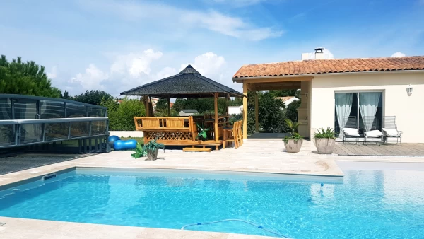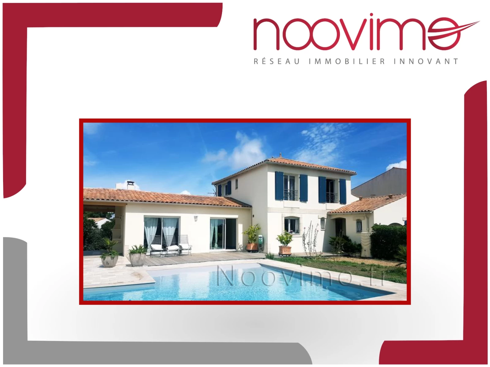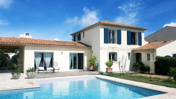 Cette élégante maison familiale est située aux boucholeurs, à proximité immédiate de la plage, à 3 kilomètres du centre de Châtelaillon. Elle est constituée au RDC d'une entrée, d'un séjour de 40 m2, d'une cuisine équipée, d'une salle de bain avec une douche deux places et d'une baignoire double, d'une buanderie, d'une chaufferie, d'un WC. Au premier étage, quatre chambres dont deux avec une magnifique vue mer, un WC. Un studio de 19 m2 avec un accès indépendant vient compléter ce bien. À l'extérieur : une piscine couverte et récente (deux ans), un arrosage automatique et un abri voitures de 27m2 avec un galta Activité de chambres d'hôtes possible Honoraires : 3,6% TTC de 660000 EUR soit 683760 honoraires inclus. Honoraires à la charge de l'acquéreur. Nos honoraires sont consultables sur : www.noovimo.fr. Votre agent indépendant inscrit au RSAC de Free cadre portage salarial No CPI 4401 2018 000 0028 7 - Annonce rédigée et publiée par un Agent Mandataire -