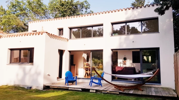 Ce bien de 2015, situé au centre de Saint-Vivien, vous offre tout le confort du neuf dans un environnement calme mais non isolé. Son architecture contemporaine avec de grandes baies vitrées prolonge les pièces de vie par un magnifique jardin (piscinable) de 674m2 , sans vis-à-vis, avec un environnement boisé, classé, non constructible. L'ensemble est élégant, harmonieux et très fonctionnel. Les matériaux et équipements sont haut de gamme avec du parquet en chêne massif sur l'ensemble de la maison sauf une chambre en jonc de mer, des huisserie en aluminium, une salle d'eau en travertin et tadelak, une cuisine entièrement aménagée et équipée, deux systèmes de chauffage pour une faible consommation d'énergie (gaz de ville et poêle à granulés Aasgard), un vide sanitaire sur l'ensemble de la maison, un visiophone avec caméra, les appuis des fenêtres en ardoise et un grand garage avec une porte automatisée. La maison se compose, au RDC, d'un porche, d'une entrée avec placard, d'un WC avec lave mains, d'un salon, d'une salle à manger, d'une cuisine, d'une chambre ou bureau, d'une buanderie, d'un garage et d'une terrasse. Au premier étage, un palier, un WC, deux chambres dont une avec dressing, une salle d'eau. Son exposition est sud-Ouest et il y a un puits dans le jardin Il est possible d'augmenter l'emprise au sol de 50 m2 St Vivien, est un charmant village bordé de champs à proximité des plages de Châtelaillon et de Fouras (piste cyclable pour Châtelaillon) ; Il se situe à 12 Km de La Rochelle (bus pour la gare de Châtelaillon), à 17 km de Rochefort, à 50 KM de Royan et à 140 km de Bordeaux (Accès 4 voies à 3 km) Dans le village : Café/journeaux/dépôt de pain, coiffeur, Cabinet d'infirmières, ludothèque, poterie, bibliothèque, gymnase avec cours proposés, parc et jeux pour enfants, boulodrome, école primaire (collège Châtelaillon, Lycée Valin La Rochelle), bus pour Châtelaillon et La Rochelle, commerces ambulants certains jours de semaine, 3 locaux commerciaux en devenir. À proximité immédiate : hypermarché, centre médical, pharmacie, vétérinaire, centre commercial d'Angoulins, centre culturel et artistique de Beauséjour, Thalasso, centre nautique, centre équestre Cette maison peut être vendue meublée - Annonce rédigée et publiée par un Agent Mandataire -